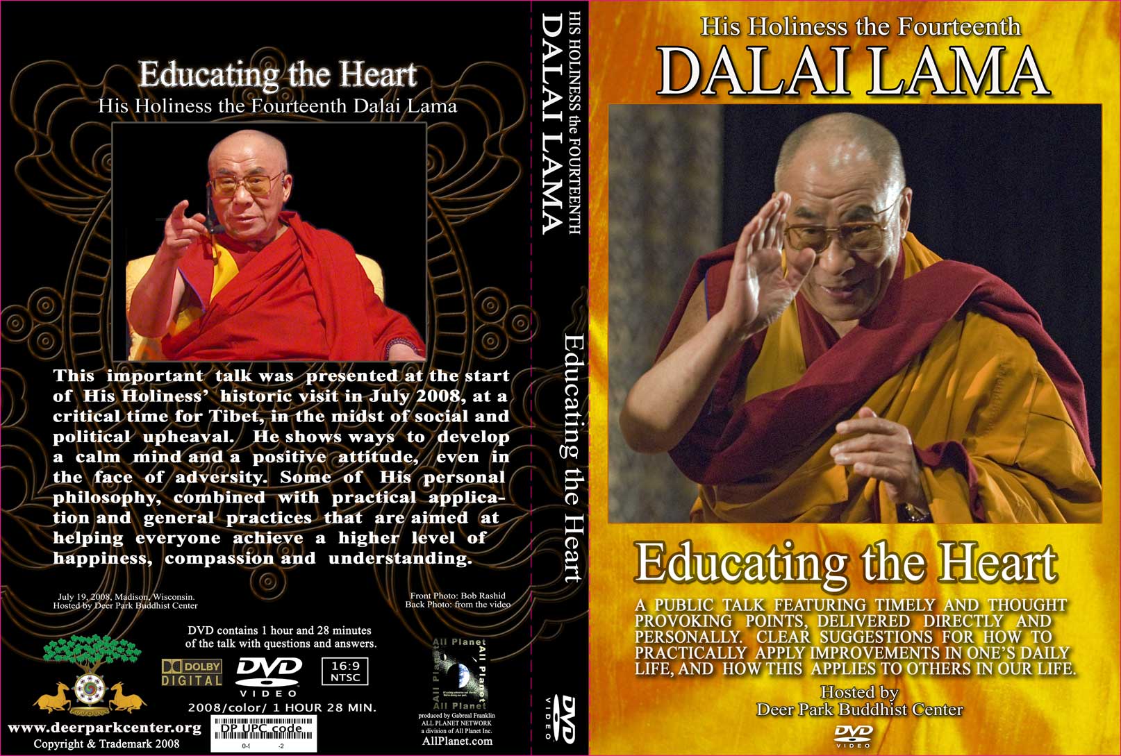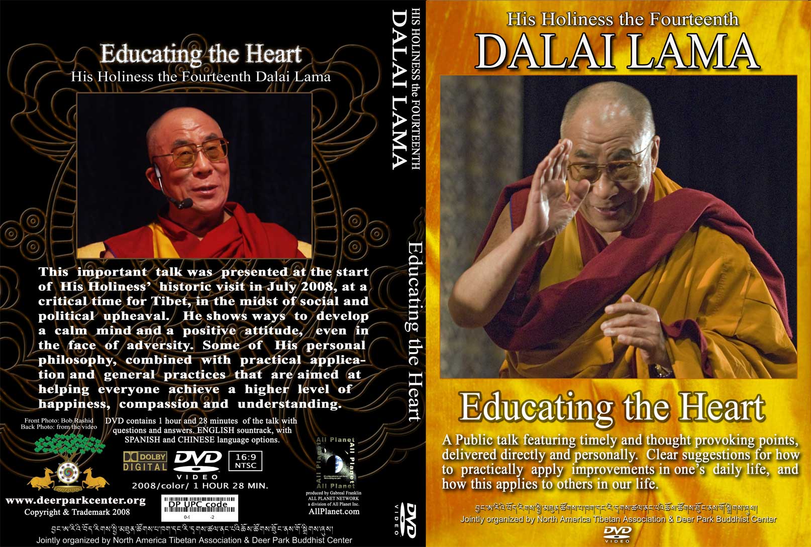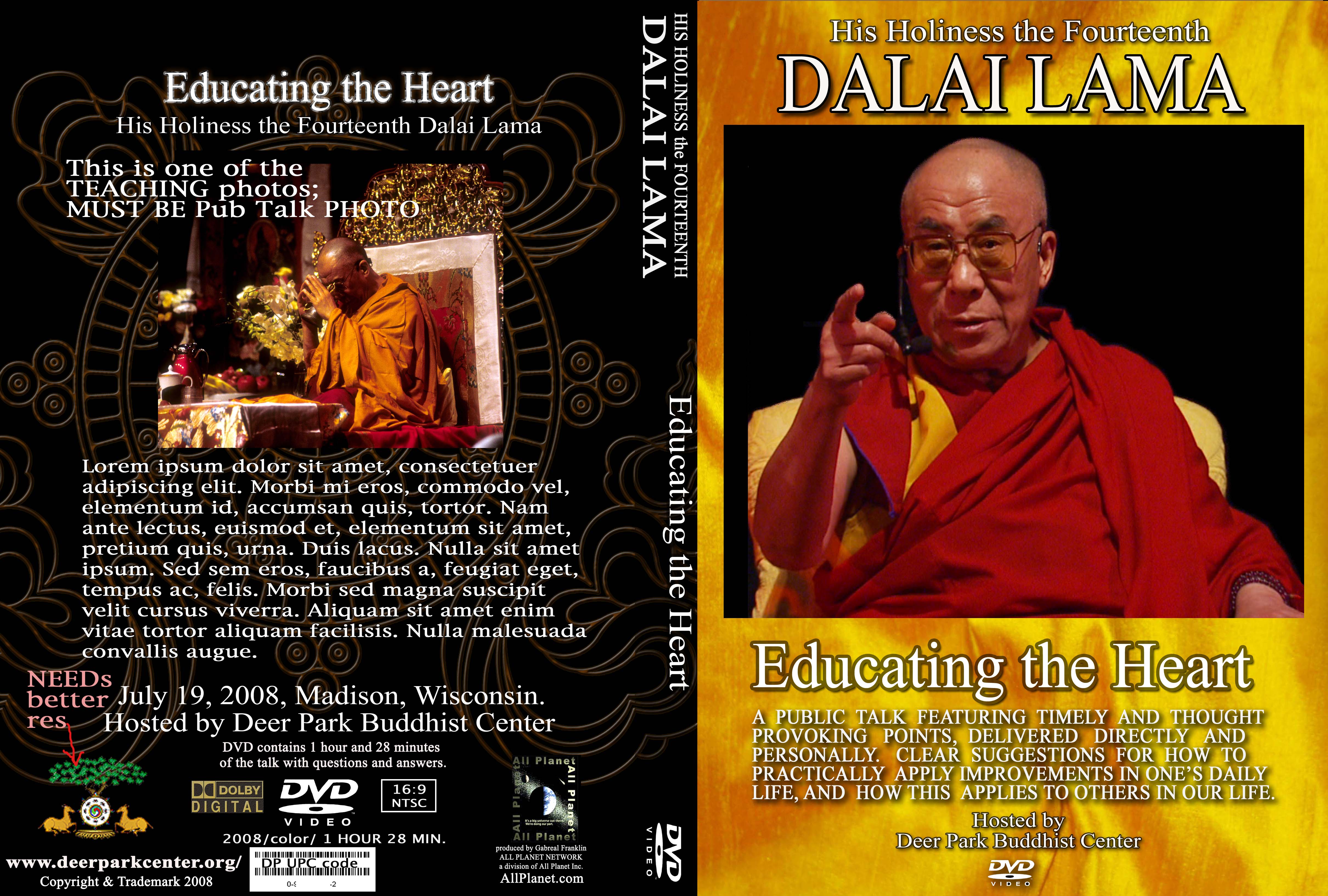 Credits on DVD (back): The members of the North American Tibetan Association and Deer Park Buddhist Center are extremely grateful to His Holiness the Fourteenth Dalai Lama for this *** comapassionate and timely public talk.