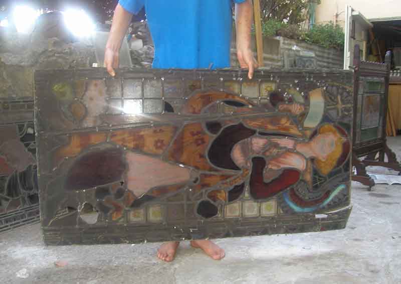 This panel is American, circa 1910 called a 1000 Jewel Window. The Jewels are 'Floated' in lead. |